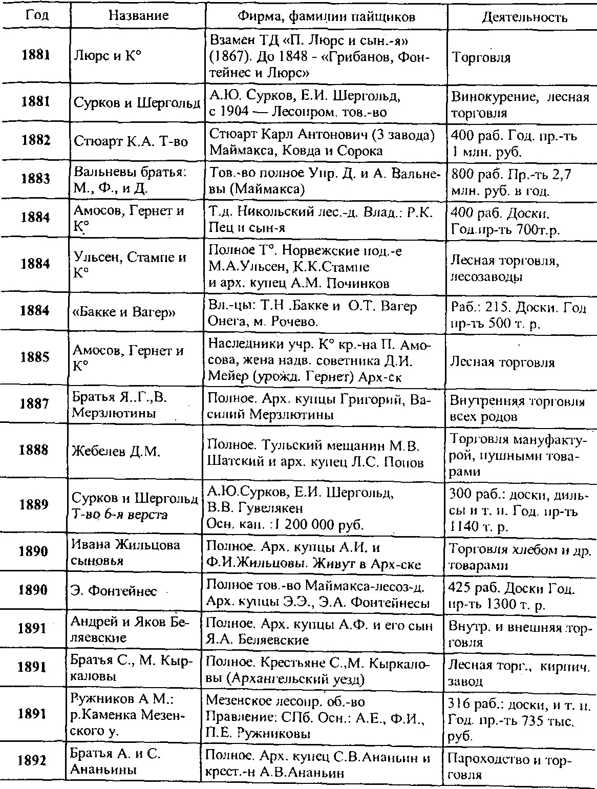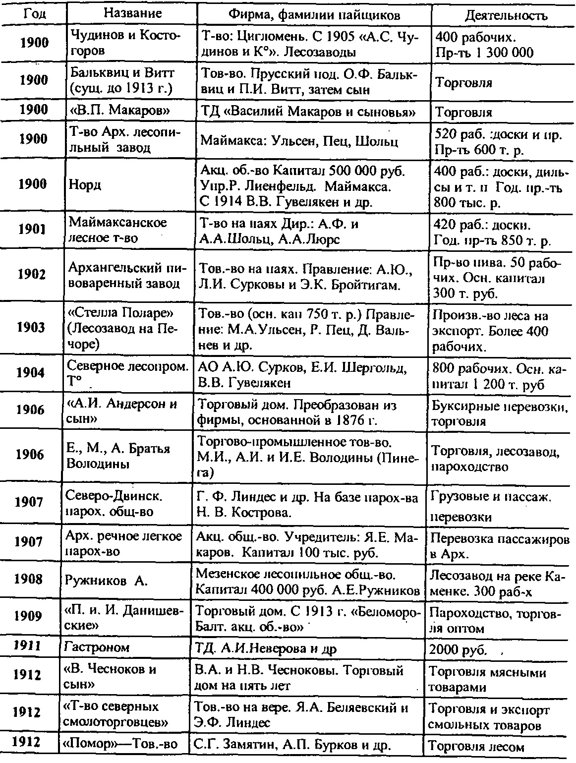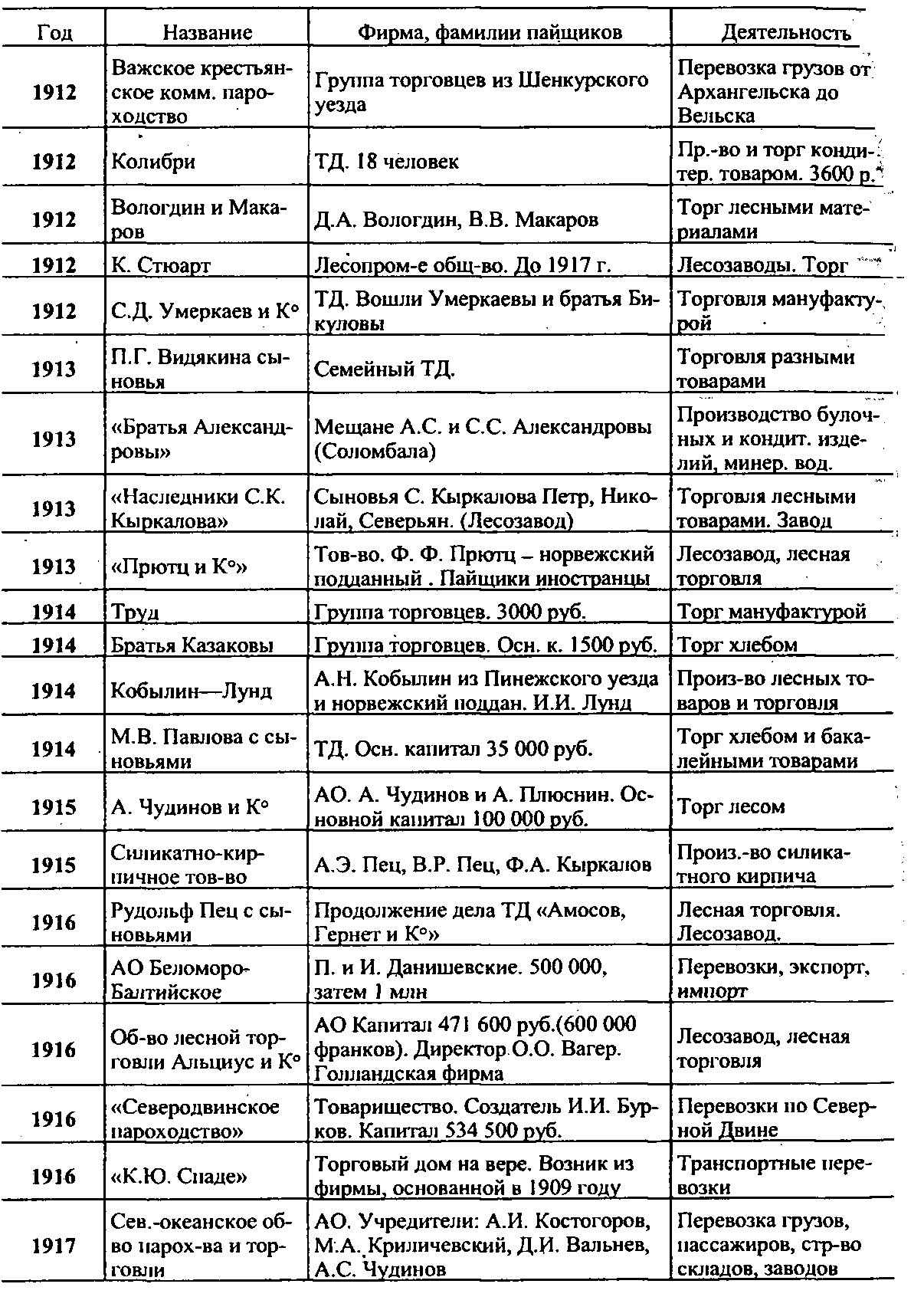 Ист.: Памятная книжка Архангельской области на 1911. Архангельск, 1911. С 157; Коммерческая справ, книжка Арх. губ. на 1915 год. Архангельск, 1915. С. 19.