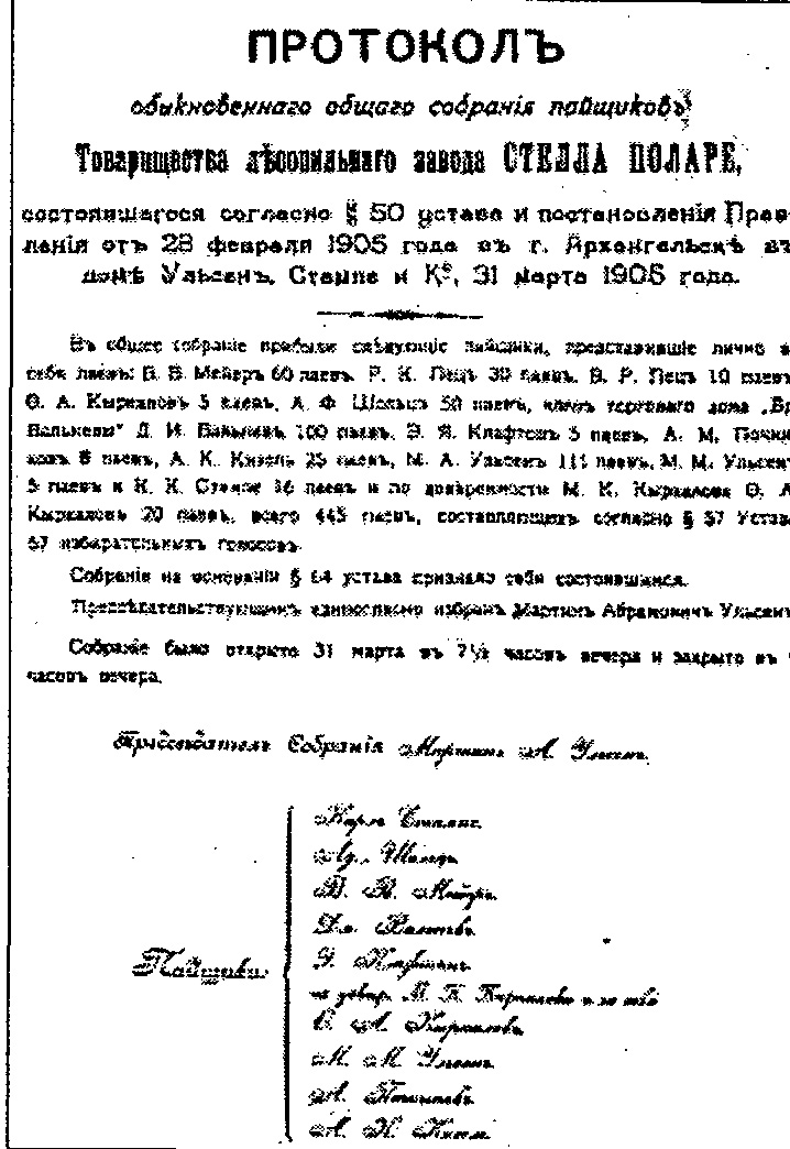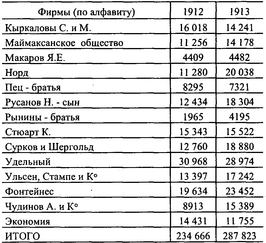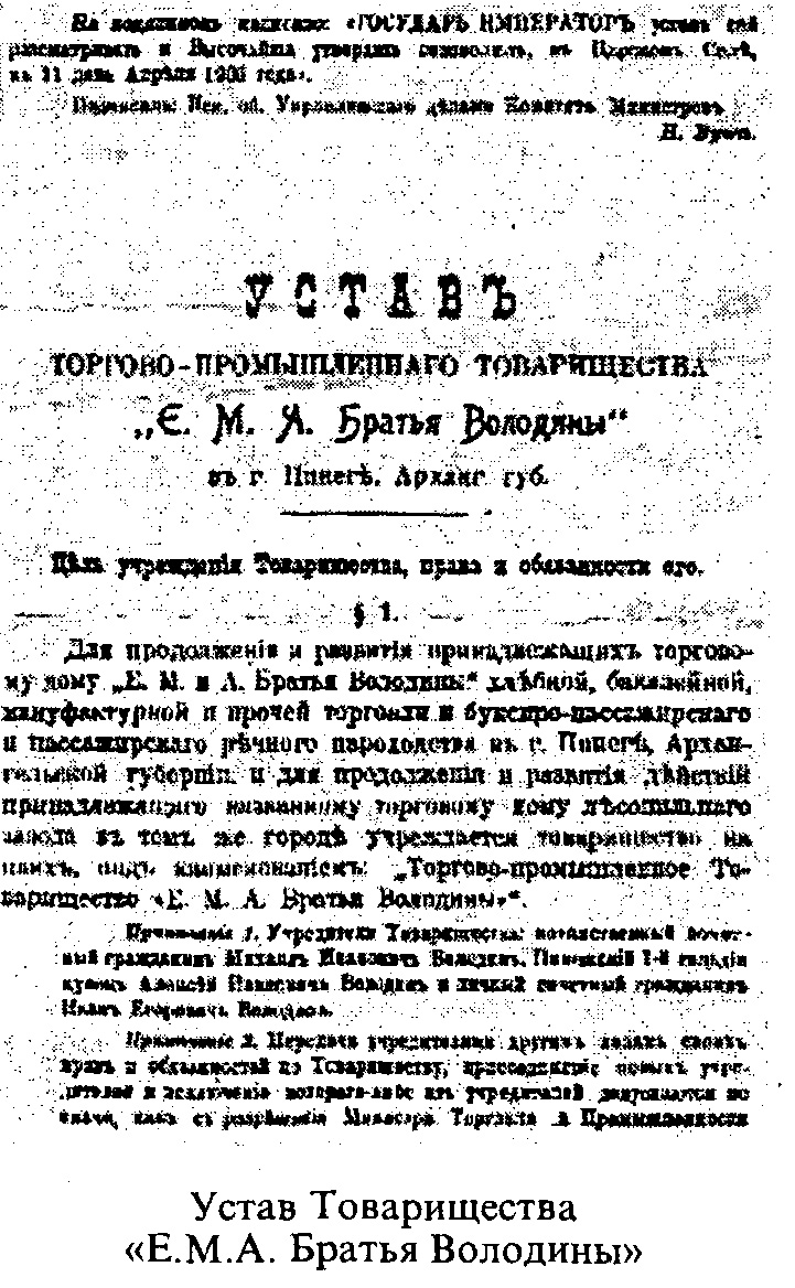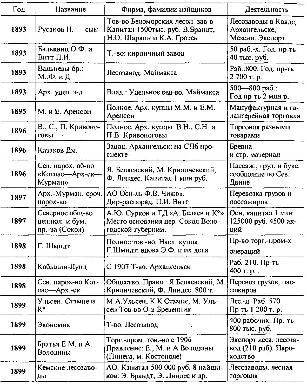Ист.: Памятная книжка Архангельской области на 1911. Архангельск, 1911. С 157; Коммерческая справ, книжка Арх. губ. на 1915 год. Архангельск, 1915. С. 19.