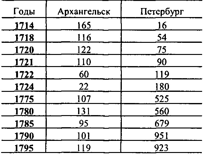 Составлено на основании данных.: А. А. Куратов. Метрология России и Русского Севера. Архангельск, 1991; В.П. Пузырев. «Паруса над Студёным морем ». М., 1993. С. 192; Некрасов Г.А. Внешняя торговля России через Ревельс- кий порт в 1721—1756 гг. М., 1984. С. 232—242.