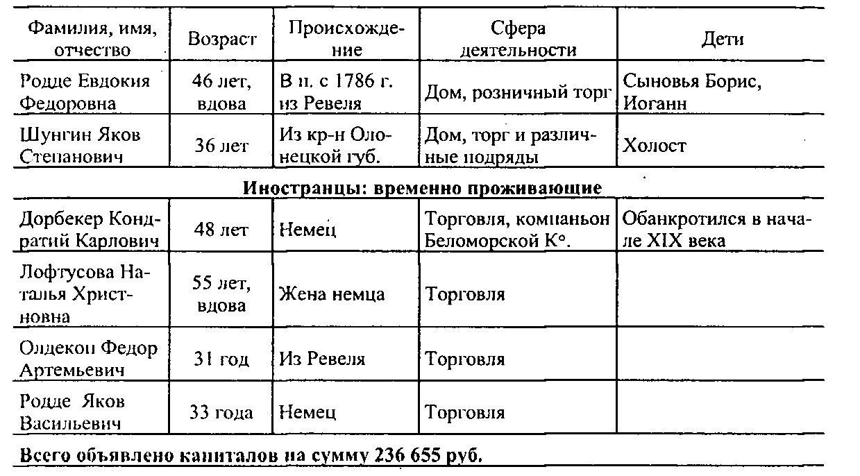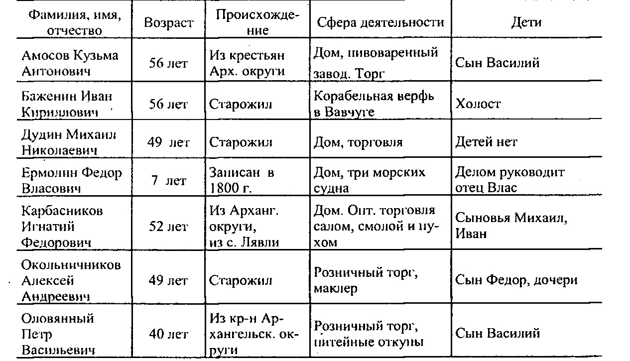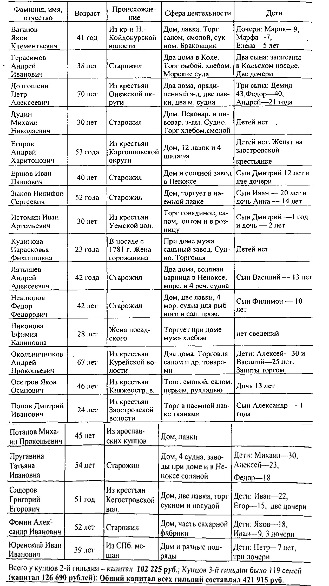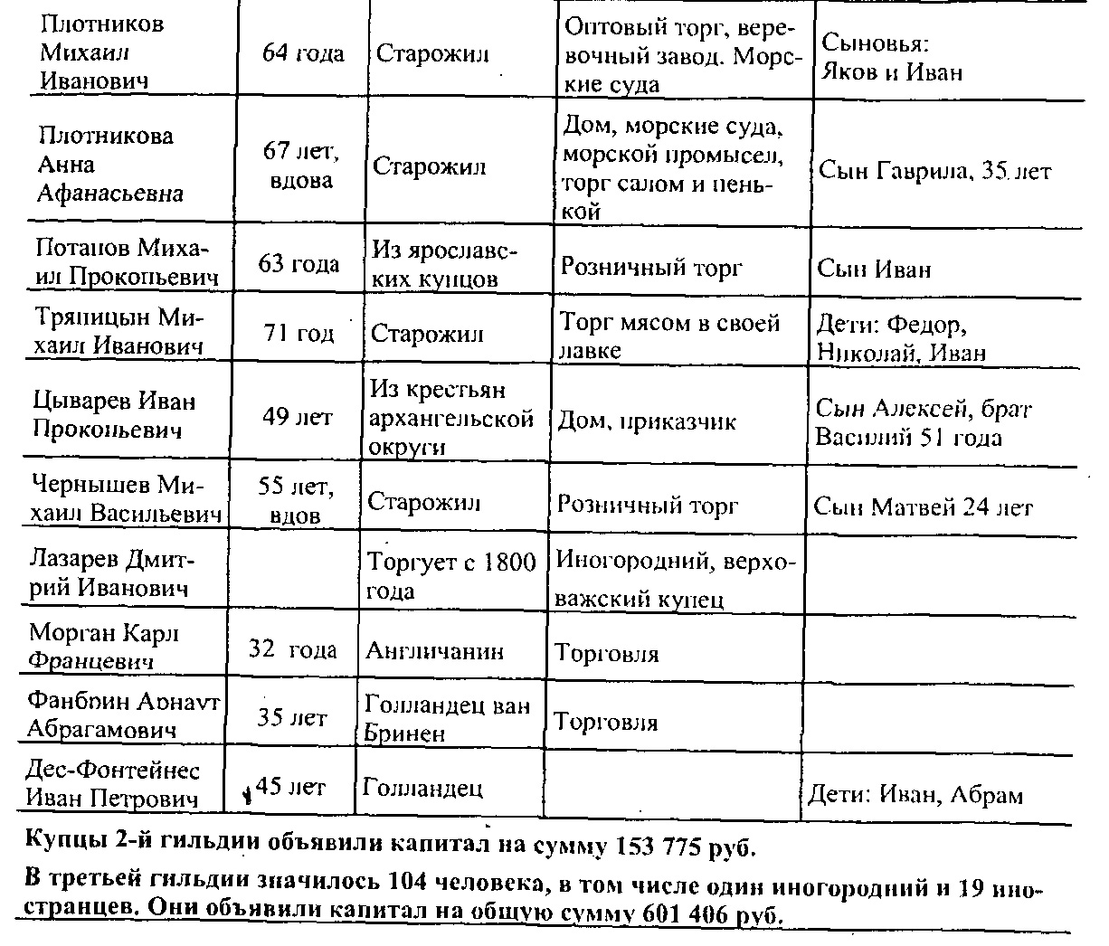 Между тем в многообразном комплексе вопросов, характеризующих становление и развитие Архангельска, до сего времени, на наш взгляд, не получила должного отражения история архангельского торгово-промышленного сословия.
